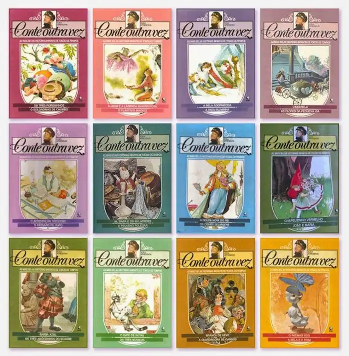 No primeiro ano depois que eu aprendi a ler, no entanto, eu escolhi o presente. O motivo que me fez trocar todos os pacotes que eu ganharia na festa por um único foi uma coleção de livros infantis que eu vi na TV. Chamava-se Conte Outra Vez e era composta por 12 volumes, cada um com duas histórias lindamente ilustradas. Cada livro vinha acompanhado de uma fita cassete com a narração dos contos. Os volumes chegavam por correio, um por mês, o que significava que levaria um ano até que meu presente estivesse completo. Lembro-me até hoje da música de abertura: